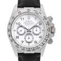 - 言わずもがなのロレックス・スポーツモデルの最上位機種であり最人気機種のコスモグラフ・デイトナ。1959年に誕生したデイトナですが、24時間耐久カーレースで有名なデイトナ・インターナショナル・スピードウェイの名にちなんで命名されました。重厚感のあるWGケースにホワイト文字盤、クラシカルなレザーベルトは高級感がありながらもクールな印象です。
