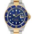 - 1953年に世界初のダイバーズウォッチとして誕生し、今なお王者として君臨する大人気モデルサブマリーナ。こちらは通称「青サブ」と呼ばれています。派手なイメージのあるステンレスとゴールドのコンビですが、文字盤とベゼルのブルーにより爽やかな印象を与えてくれます。長年に渡り愛されてきたこの品番のサブマリーナも、2010年にリニューアルされ生産が終了しました。