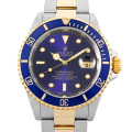 - 今なおダイバーズウォッチの王者として君臨する大人気モデルの“サブマリーナ”。こちらは、Ref.16613の中でも90年代のごく一部の個体にしか見られない、紫色のダイアルを備えたモデルです。この色身は年式や、文字盤を製造した工場によって出来ると言われています。見た目で違いがはっきりと分かるバイオレット(パープル)カラーになっており、ブルーのベゼルとのコントラストが鮮やかです。