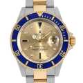 - 1953年に発表されたダイバーズウォッチサブマリーナは、50年以上経った今でもロレックスのスタンダードダイバーズとして絶大な人気を誇るモデルです。ケース前部には逆回転防止ベゼルが備わり、潜水時にボンベ内の酸素残量の計測や潜水時間を計る事が可能です。デイトジャストと共通の自動巻きCal.3135を搭載しており、オイスターケースやトリプロックリューズにより300mの防水性を実現しています。こちらは、華やかなイエローゴールドとのコンビになり、8Pダイヤ・3Pサファイアを配したゴージャスなモデルです。