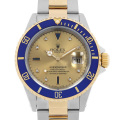 - 1953年に発表されたダイバーズウォッチサブマリーナは、50年以上経った今でもロレックスのスタンダードダイバーズとして絶大な人気を誇るモデルです。ケース前部には逆回転防止ベゼルが備わり、潜水時にボンベ内の酸素残量の計測や潜水時間を計る事が可能です。デイトジャストと共通の自動巻きCal.3135を搭載しており、オイスターケースやトリプロックリューズにより300mの防水性を実現しています。こちらは、華やかなイエローゴールドとのコンビになり、8Pダイヤ・3Pサファイアを配したゴージャスなモデルです。