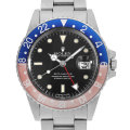 - 1950年代に登場した“GMTマスター”の3代目にあたるRef.16750です。インデックスがフチありとフチなしの2タイプ存在しますが、こちらは「フチあり」のタイプになります。風防はプラスチック、ムーブメントはデイトジャスト機能、デイトのクイックチェンジ、ハック機能を備えています。