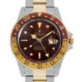 - 1980年頃に登場したGMTマスターのサードモデルRef.16753。ロレックスの中でも人気の高い「GMTマスター」のコンビモデルです。こちらはブラックの文字盤に通称「フジツボ」と呼ばれるアップライトのインデックスが特徴的なモデルです。