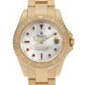 - ヨットマスターは自家用クルーザーやヨットを所有し、クルージングを楽しむセレブな方々をターゲットにした高級スポーツウォッチです。水深100mの防水設計がされており、回転ベゼルは船上での経過時間を計ることが出来ます。 こちらはシェルの文字盤にルビーのインデックスが施され、スポーティかつラグジュアリーな時計をお探しのかたにおすすめのモデルです。