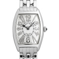 - フランクミュラーのレディースモデルの中でも人気の高い1752シリーズ。こちらは8つのビザン数字と4つのローマ数字を組み合わせた文字盤の“アンサンブル”です。ステンレスケースとシルバーダイアルの組み合わせが美しい、シックでクールな時計に仕上がっています。時刻合わせの手間がかからないクォーツムーブメントを搭載しており、操作性も抜群です。