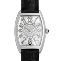 - フランクミュラーのレディースモデルの中でも人気の高い1752シリーズ。流麗なトノーカーベックスケースに文字盤のダイヤモンドの組み合わせはラグジュアリーなイメージで、ドレッシーな装いにピッタリのモデルです。時刻合わせの手間がかからないクォーツムーブメントを搭載しており、操作性も抜群です。