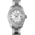 - 1945年にリリースされ、今やロレックスの顔とも言える“デイトジャスト”は、金属塊から削りだした防水性の高いオイスターケース、午前0時頃瞬時に日付けが変わるデイトジャスト機構、全回転式ローターを搭載したパーペチュアル機構と、ロレックス三大機構を搭載したモデルです。こちらはホワイトの文字盤にローマンインデックスが組み合わせられ、オールマイティにお使い頂けるモデルとなっています。