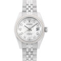 - ロレックスの三大機構(オイスターケース、パーペチュアル機構、デイトジャスト機構)を全て備えたデイトジャスト。1945年に登場し、現在ではレディース・ロレックスの顔と言うべき存在になりました。こちらはダイアルに彫りこまれたコンピューターの基盤のような幾何学的な“ROLEX”の模様が特徴的なモデルです。インデックスに10粒のダイヤモンドを配し、ジュビリーブレスを採用することでラグジュアリーな雰囲気を醸し出しています。