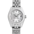 - 1945年にリリースされ、今やロレックスの顔とも言える“デイトジャスト”。金属塊から削りだした防水性の高いオイスターケース、午前0時頃瞬時に日付けが変わるデイトジャスト機構、全回転式ローターを搭載したパーペチュアル機構と、ロレックス三大機構を搭載したモデルです。こちらはインデックスに10粒のダイヤモンドを配し、ジュビリーブレスを採用することでラグジュアリーな雰囲気を醸し出しています。