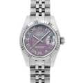- 1945年に誕生し、今やレディースロレックスの顔とも言える"デイトジャスト"。ロレックスの三大機構(オイスターケース・パーペチュアル機構・デイトジャスト機構)を全て備えたモデルです。ダイアル色、ケース素材などの組み合わせは多岐に渡り、非常に多彩なバリエーションが存在するのが最大の魅力です。こちらはダイアルにシェル(マザーオブパール)を採用したモデルとなり、見る角度によって表情を変える艶やかな美しさが腕元を華やかに彩ります。