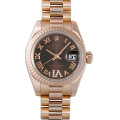 - 1945年にリリースされ、今やロレックスの顔とも言える“デイトジャスト”は、金属塊から削り出した防水性の高いオイスターケース、午前0時頃瞬時に日付けが変わるデイトジャスト機構、全回転式ローターを搭載したパーペチュアル機構と、ロレックス三大機構を搭載したモデルです。ピンクゴールドのケースに6時位置にダイヤインデックスを配し、柔らかい質感は落ち着いた印象を与えます。世界的にも人気が高く品薄の商品です。