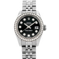 - ロレックスの定番であり、不動の人気を誇る“デイトジャスト”。こちらはブラックダイヤルに10粒、ベゼルに46粒ものダイヤモンドをちりばめた、エレガントな大人のモデルです。防水性の高いオイスターケース、午前0時頃瞬時に日付けが変わるデイトジャスト機構、全回転式ローターを搭載したパーペチュアル機構と、ロレックスの三大機構を搭載しており機能性も申し分ありません。