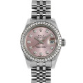 - ロレックスの定番であり、不動の人気を誇る“デイトジャスト”。こちらはダイアルに10粒、ベゼルに46粒ものダイヤモンドをちりばめた、エレガントな大人のモデルです。防水性の高いオイスターケース、午前0時頃瞬時に日付けが変わるデイトジャスト機構、全回転式ローターを搭載したパーペチュアル機構と、ロレックスの三大機構を搭載しており機能性も申し分ありません。