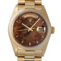 - ロレックスの最上級ラインとして1956年に誕生したハイクラス・コレクション“デイデイト”。高級素材のみを使用しているモデルであり「富と成功の証」とも言われています。様々なバリエーションがありますが、こちらは文字盤に世界三大銘木に数えられている木材「マホガニー」を用いた非常に珍しいモデルです。