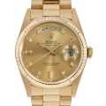 - 1956年の誕生以来、ロレックスの最上級ラインとして最高級の素材と質感に拘ったハイクラスシリーズ"デイデイト"。素材はゴールドもしくはプラチナのみを使用しています。ムーブメントには同社の高い技術力が生んだCal.3155クロノメーターを搭載し、ベゼルはロレックス伝統のフルーテッドベゼルを採用しています。ダイアルは8Pダイヤモンドと2Pバゲットダイヤモンドを配したゴージャスな一本です。