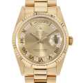 - ロレックスの最上級ラインとして1956年に誕生以来、最高級の素材と質感にこだわったハイクラスシリーズデイデイト。素材はゴールドもしくはプラチナのみを採用しており、唯一フルカレンダーを搭載しています。こちらはローマンインデックスの隙間を埋めるようにパヴェダイヤが配置された「ミリヤード」と呼ばれるデザインのダイアルです。ダイヤモンドとイエローゴールドによってより一層ゴージャス感が引き立つモデルです。