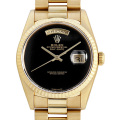 - ロレックスの最上級ラインとして1956年に誕生以来、最高級の素材と質感に拘ったハイクラスシリーズ“デイデイト”。素材はゴールドもしくはプラチナのみを使用しており、唯一フルカレンダーを搭載しています。こちらは文字盤に「オニキス」という黒色の天然石を使用した、まるで工芸品のような風格あるモデルです。オニキスは悪霊を祓う石として使われてきた魔除けの石です。嫉妬や妬みなど悪い感情から持ち主を守ってくれると言われています。 流通量が少ない為、ご覧頂くのは初めてと言う方も多いのではないでしょうか。