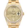 - 1956年の誕生以来、ロレックスの最上級ラインとして最高級の素材と質感にこだわったハイクラスシリーズデイデイト。素材はゴールドもしくはプラチナのみを使用しており、唯一フルカレンダーを搭載するモデルです。「富と成功の証」とも言われています。こちらはベゼルとラグにダイヤモンドがセッティングされた豪華な一本です。