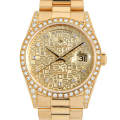 - 1956年の誕生以来、ロレックスの最上級コレクションとして、最高級の素材と質感にこだわったハイクラスモデル“デイデイト”。こちらは、ダイアルに10粒のダイヤ、さらにはベゼルとラグにも贅沢にダイヤを装飾した存在感抜群のゴージャスなモデルです。