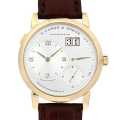 - 1994年に4年もの開発期間を経てランゲ&ゾーネ 復活第一号モデル として発表された「ランゲ1」。50年前の時計を現代に蘇らせるという復刻的な意味合いだけでなく、通常の4倍ものカレンダー表示を可能にしたアウトサイズデイトやツインバレルによる72時間ものパワーリザーブを搭載するなど、新生ランゲ&ゾーネの誕生を広く世界にアピールする記念碑的なモデルとなりました。スケルトンバックから見ることが出来る自社製ムーブメントCal.L121.1の美しさは言葉で表現しきれない出来栄えです