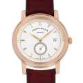 - フランクミュラーと言えばトノー型ケースやビザン数字のイメージが強いですが、直径36mmのラウンドケースに収められたこのモデルはかつての独立時計師フランク・ミュラーの作品を象徴する、まさに源流というべきモデルです。今までに無い曲線と直線が微妙に組み合わされたケースデザインはクラシックと現代的感覚が見事に調和しています。ピンクゴールドのケースに合わせて針、インデックスにもピンクゴールドが使用されており、上品で温かみのあるラウンドウォッチです。