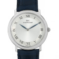 - 1984年に発表された「ポートフィノ」。名前はイタリアの高級リゾート地として有名なフィノ港に由来しています。スッキリとしたデザインは従来通りで、控えめな美しさを体現する仕上がりとなっています。こちらはプラチナ製の小ぶりな34?のケースでレトロスタイルのモデルです。