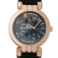 - 上品なピンクゴールドケースの「プルミエール エキセンター」が入荷いたしました。「エキセンター」のモデル名が表す通り、針は文字盤の中央から外れた位置に配されています。3時側のインダイアルが時・分針、9時側のインダイアルが秒針になっています。一見するとレトログラードのような秒針ですが、30秒かけて下に降りた針が、その後30秒かけて上に昇ってくるという、世界初の往復運動する秒針を搭載しています。外観の美しさだけに留まらない、高級感・存在感を兼ね備えたタイムピースです。