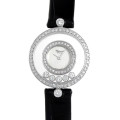 - ケースにホワイトゴールドを使用し、ラグとベゼルにダイヤモンドを散りばめた“ハッピー ダイヤモンド”を入荷いたしました。裏と表、二枚のサファイアガラスの間を、5個のダイヤモンドがくるくると滑るように回る遊び心溢れたタイムピースです。