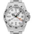 - 第四世代エクスプローラーIIの入荷です。先代の16570より2mm大きい42mmケースを採用し、さらに存在感が増しています。ムーブメントは耐磁性ブルーパラクロム・ヘアスプリングを使用したCal.3187クロノメーターを搭載。夜光塗料も従来の倍(8時間)の長時間持続性を持っており、各部が着実な進化を遂げました。こちらのモデルは、ブラックとホワイトの二色展開になります。