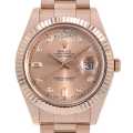 - ロレックスの最上位機種であるデイデイトのケース径を41mmにサイズアップしたモデルです。従来のピンクゴールドに微量のプラチナが入った「エバーローズゴールド」を使用。輝きの衰えない上品で鮮やかな色味が魅力です。ムーブメントもパラクロム製ヒゲゼンマイを採用するなど、 内外にロレックスのこだわりが感じられる1本です。