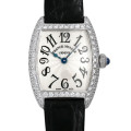- 流麗なトノーカーベックスケースにダイヤモンドを組み合わせた、ドレッシーな装いにピッタリのモデルです。厳重な素材の選択と厳密な手作業が守られ続けているフランク・ミュラーの工房では、使用するダイヤモンドは常に最高グレードのみを厳選。「トップ・ヴェッセルトン」VVSのダイヤモンドが極上の輝きを生み出しています。