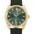 - オメガの海洋への敬意を表す「シーマスター」シリーズの中でも、クラシックな美しさと現代的なカラーセンスを融合させた一本です。ムーンシャインゴールドの柔らかな輝きと、ベイグリーンの文字盤が絶妙なコントラストを生み出し、上品で個性的な印象を与える1本です。シーマスター アクアテラ シェード コレクションの中でも特にエレガントで洗練されたモデルです。