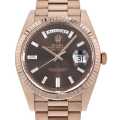 - 2015年発表、公認クロノメーター規格以上の精度を誇る自社開発ムーブメント「3255」を搭載した"デイデイト"です。メインスプリングが収納される香箱も一新され、新採用されたクロナジーエスケープメントの効率性と合わせてパワーリザーブは約3日間に延長されました。18Kエバーローズゴールド製ケースにバゲットカットダイヤモンドをセッティングした高級感溢れる一本です。