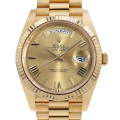 - 2015年発表のデイデイト40が入荷しました。公認クロノメーター規格以上の制度を誇る新型自社開発ムーブメント「3255」を搭載したモデルです。メインスプリングが収納される香箱も一新され、新採用されたクロナジーエスケープメントの効率性と合わせてパワーリザーブは約3日間に延長されました。イエローゴールドで統一されたケースにローマンインデックスが高級感溢れる一本に仕上がっています。