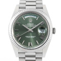 - ロレックスの最上級ラインとして1956年に誕生したハイクラスシリーズデイデイト”。こちらは、ロレックスが独自に開発・製造した最高の性能を誇る新世代機械式ムーブメント、キャリバー3255を搭載。メインスプリングが収納される香箱も改良され、新たに採用されたクロナジーエスケープメントの効率性と合わせて、パワーリザーブは約3日間に延長されました。