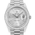 - ロレックスの最上級ラインとして1956年に誕生したハイクラスシリーズ"デイデイト"。こちらは、ロレックスが独自に開発・製造した最高の性能を誇る新世代機械式ムーブメントを搭載しています。 メインスプリングが収納される香箱も一新され、新採用されたクロナジーエスケープメントの効率性と合わせてパワーリザーブも向上しています。ベゼルにダイヤモンド、ダイアル上にバゲットダイヤを贅沢に配したゴージャスなモデルです。
