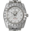 - 5連ブレスレットがエレガントな印象を与える、チューダー“クラシック”が入荷致しました。ステンレス製のベゼルにはシンプルなドーム型ではなくカットが入り、ラグジュアリーな中に個性を醸します。バーインデックスにセンターセコンドの三針とカレンダーのスッキリとしたフェイスながら、モザイクパターンが華やかさも両立。人と被らない時計をお探しの方にお勧めです。
