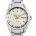 - オメガのラグジュアリースポーツモデル「アクアテラ」。こちらはアニュアルカレンダーを備えた自社製コーアクシャルムーブメントCal.8601を搭載したモデルです。豪華船のウッドデッキに着想を得たタペストリーダイヤルや蛍光塗料付きアロー指針&くさびインデックスが特徴的です。パワーリザーブ55時間。150メートル防水。ケースバックはシースルー仕様。