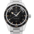 - 1957年に、潜水士などの水中作業のプロフェッショナルへ向けてデザインされ登場したシーマスター300。こちらは、そのアイコニックなモデルの雰囲気を現代の技術と共に再構築したモデルです。60時間のパワーリザーブと、高い耐磁性を誇る、コーアクシャル マスタークロノメーター ムーブメント Cal.8912を搭載。ブラックダイアルにはスーパールミノバが塗布され、シュウ酸陽極酸化処理を施したアルミニウム製ベゼルを用いています。300m防水。2021年モデル。