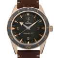 - 1957年に、潜水士などの水中作業のプロフェッショナルへ向けてデザインされ登場したシーマスター300。こちらは、そのアイコニックなモデルの雰囲気を現代の技術と共に再構築したモデルです。60時間のパワーリザーブと、高い耐磁性を誇る、コーアクシャル マスタークロノメーター ムーブメント Cal.8912を搭載。ケースとベゼルは9Kブロンズゴールド製で、ブラウンセラミック製ベゼルリングにはスーパールミノヴァが施されています。こちらはレザーストラップモデルとなっています。300m防水。2021年モデル。
