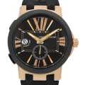 - タイムゾーンクイックセッティング機構という、便利な機能とシンプルで優れた操作性を備えている"デュアルタイム"コレクション。2010年に新ダイアルが登場し、ダイアルの中に1色加えることで更にスタイリッシュなデザインに仕上げました。べゼル、プッシュボタンには、初代同様セラミックを組み合わせています。ブラックフェイス&ローズゴールドの色の組み合わせは高級感に溢れています。