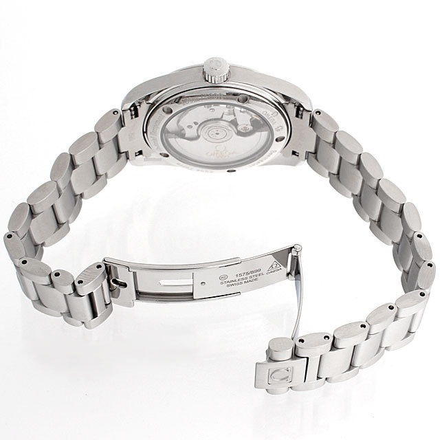 - スタイリッシュなデザインで人気の“アクアテラ”。現在は金無垢モデルやダイヤベゼルモデル等様々なバリエーションが増えましたが、このSSブラックフェイスはスタンダードかつシンプルなスタイルで永世定番として長く愛用できるモデルです。ETA2892-A2をベースに初めてコーアクシャル脱進機を組み込むことに成功したCal.2500を搭載しています。ケースバックがシースルー仕様となっているのも機械式腕時計の醍醐味と言えるでしょう。150m防水。