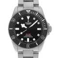 - グレード2チタニウム製ケースにシックなブラックダイアルと「イカ針」と呼ばれる独特な形状の時針を組み合わせた目をひくモデルです。ムーブメントにはマニュファクチュールキャリバーMT5400搭載。パワーリザーブ約70時間。200m防水