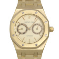 - 素材にイエローゴールドを使用したゴージャスな“ロイヤルオーク”です。宝飾メーカーの金無垢モデルと比較しても遜色のないデザインではないでしょうか。9時側インダイアルの月名表示はフランス語となっております。流通量が少なく、年々稀少性が高まっているモデルです。