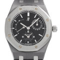 - “ロイヤルオーク”はラグジュアリー・スポーツウォッチとして1972年に発表され、今やオーデマ・ピゲの顔として高い人気を誇る代表作です。オーデマピゲの象徴である伝統的なオクタゴンケースは見る人を魅了します。こちらは「デュアルタイム(セカンドタイム)」 を搭載したモデルです。ポインターデイトやパワーリザーブも搭載されており使い勝手の良い1本です。