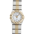 - ステンレススティールとイエローゴールドをコンビで使用した“サンモリッツ”が入荷致しました。インデックスとして文字盤に12ピース、ベゼルに20ピースのダイヤモンドがセッティングされたゴージャスな雰囲気です。ステンとゴールドの段差のない継ぎ目が美しいブレスレット、ダイアル6時位置の太陽マークなど、細かい部分にこだわりを感じる意匠です。