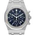 - オーデマピゲを代表し、ラグジュアリースポーツウォッチの代名詞とも言える"ロイヤルオーク"。こちらはダークブルー(ネイビーブルー)文字盤を備えたクロノグラフモデルです。ムーブメントには自動巻きCal.2385を搭載。落ち着いた大人の雰囲気を醸し出す仕上がりです。