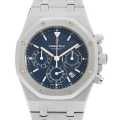- オーデマピゲを代表し、ラグジュアリースポーツウォッチの代名詞とも言えるロイヤルオーク。こちらはダークブルー(ネイビーブルー)文字盤を備えたクロノグラフです。落ち着いた大人の雰囲気をかもし出すモデルです。クラシックなサイズ感と完成されたデザイン、実用性を兼ね備えたロイヤルオークの名作です。