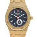 - 一見すると年次カレンダーには見えないほどスタイリッシュな"ロイヤルオーク アニュアルカレンダー"。メンズモデルとしてはやや小ぶりな36mmケースですが、絶妙なデザインバランスにより洗練された雰囲気を放っています。人と異なる"ロイヤルオーク"をお探しの方におすすめの一本です。日付はポインターデイト表示、月は5時位置に配され、遊び心ある独自のレイアウトを実現。針とインデックスのホワイト、ポインターデイトのレッド、そして淡いネイビーの文字盤がトリコロールを成し、調和のとれた美しさを生み出しています。希少性と個性を兼ね備えた魅力的なモデルです。