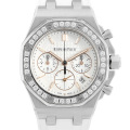 - “ロイヤルオーク”はラグジュアリー・スポーツウォッチとして1972年に発表され、今やオーデマ・ピゲの顔として高い人気を誇る代表作です。こちらはベゼルにダイヤモンドをセッティングし、ステンレスのケースにホワイトラバーを合わせたモデルとなっております。